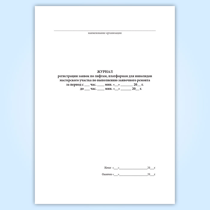 Журнал регистрации заявок по лифтам, платформам для инвалидов мастерского участка по выполнению заявочного ремонта в Чите купить