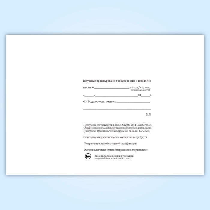 Вы получаете печатную продукцию прошнурованной и c местом для вашей печати в соответствии с действующими нормативными документами: