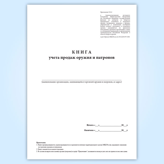 Книга учета продаж оружия и патронов (Приказ МВД России от 29.06.2012 N 646) в Чите купить