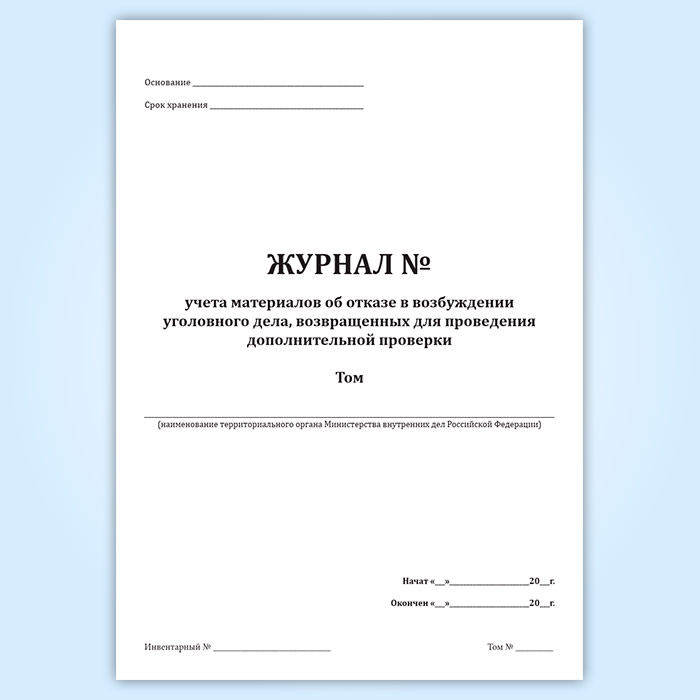 Журнал учета материалов об отказе в возбуждении уголовного дела, возвращенных для проведения дополнительной проверки в Чите купить