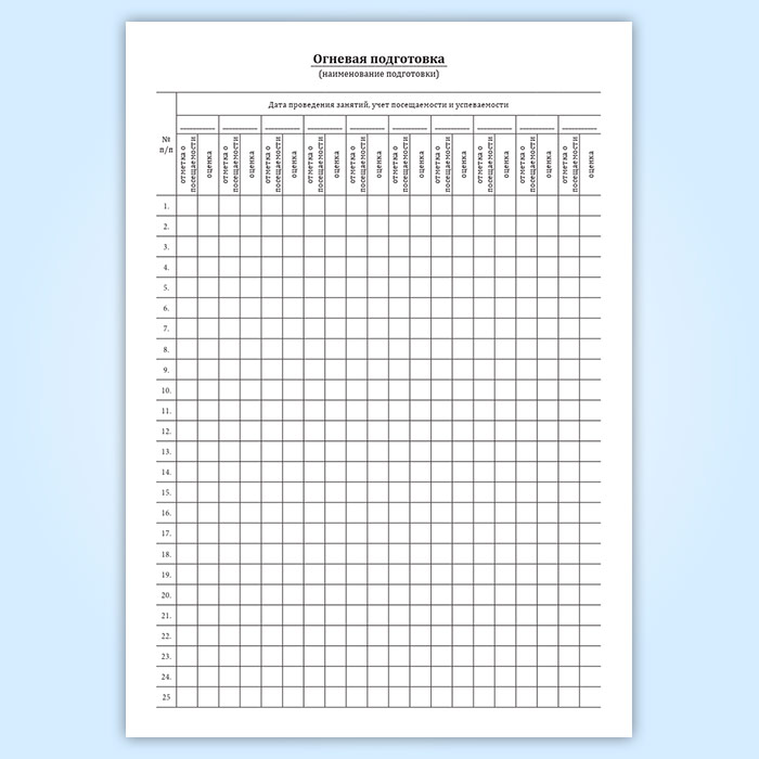 Журнал учета посещаемости занятий и успеваемости сотрудников по профессиональной служебной и физической подготовке в Чите купить