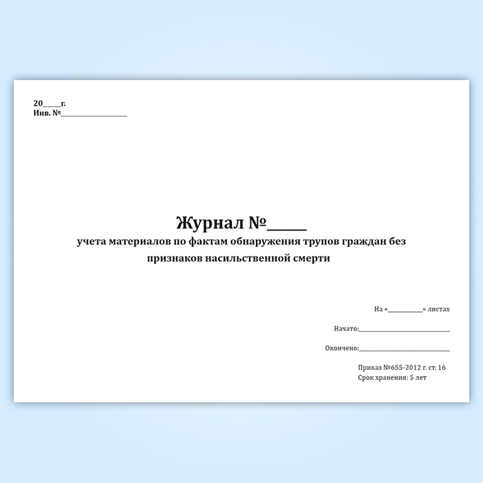 Журнал учета материалов по фактам обнаружения трупов граждан без признаков насильственной смерти в Чите купить