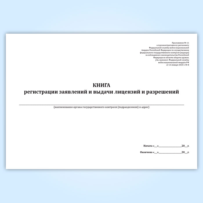Книга регистрации заявлений и выдачи лицензий и разрешений (Приказ Росгвардии от 14.01.2020 N 8) в Чите купить