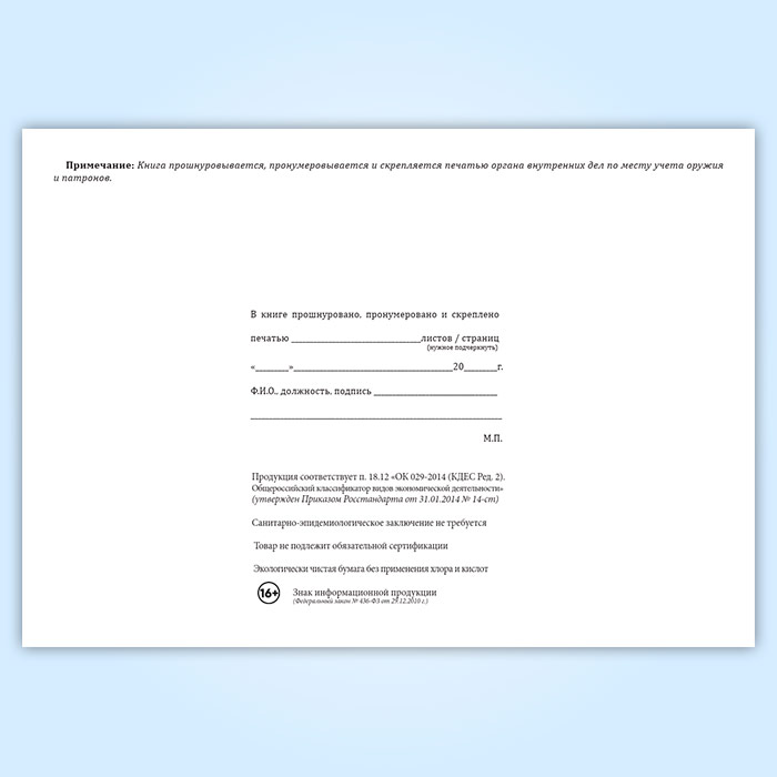 Книга номерного учета и персонального закрепления оружия и патронов в Чите купить