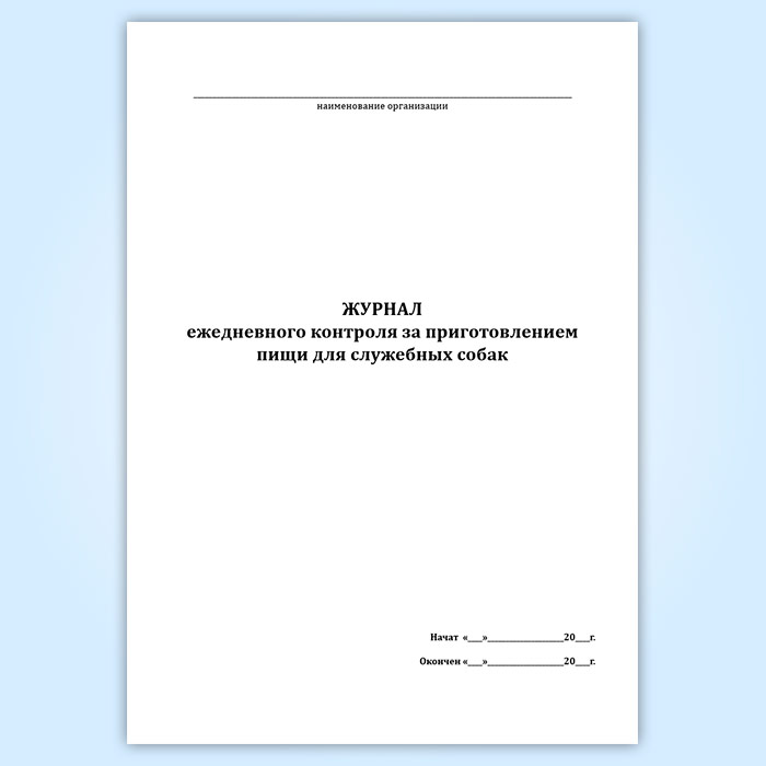 Журнал ежедневного контроля за приготовлением пищи для служебных собак в Чите купить