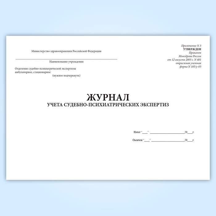 Журнал учета судебно-психиатрических экспертиз (форма 105/у-03) в Чите купить