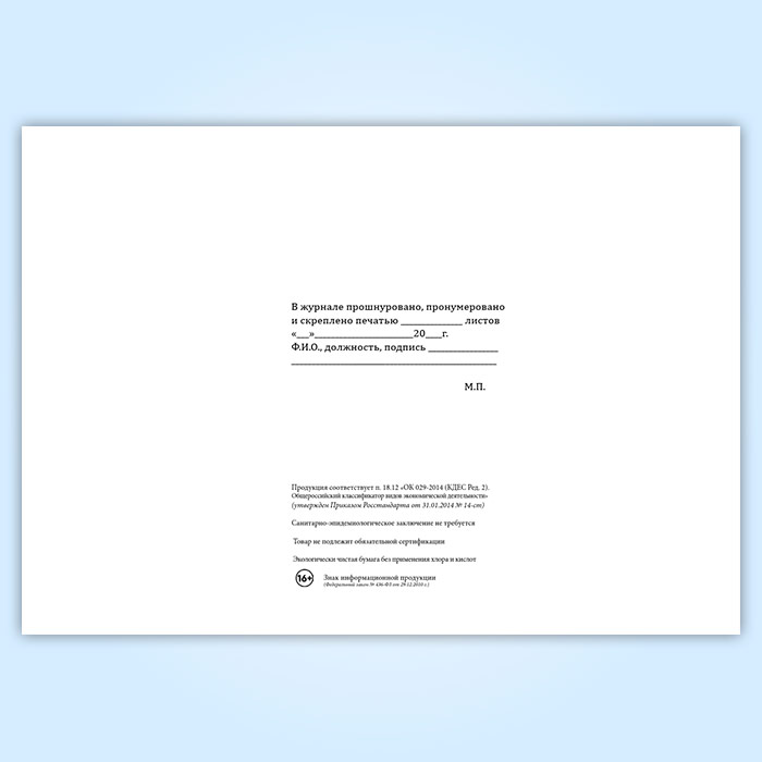 Вы получаете печатную продукцию прошнурованной и c местом для вашей печати в соответствии с действующими нормативными документами: