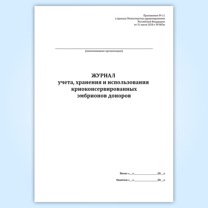Журнал учета, хранения и использования криоконсервированных эмбрионов доноров в Чите купить