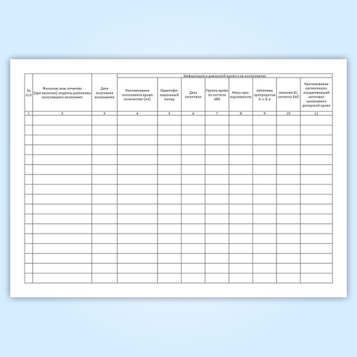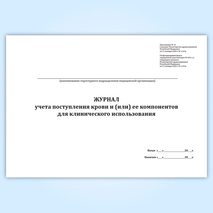 Журнал учета поступления крови и (или) ее компонентов для клинического использования (форма № 494-1/у) в Чите купить
