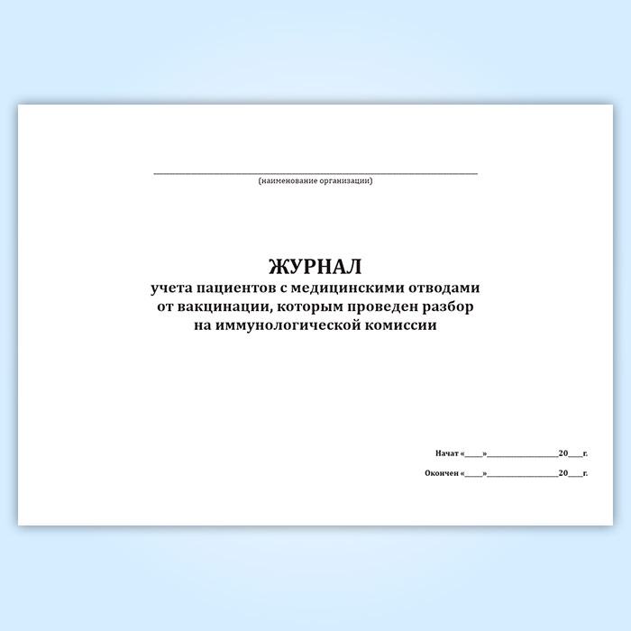 Журнал учета пациентов с медицинскими отводами от вакцинации, которым проведен разбор на иммунологической комиссии в Чите купить