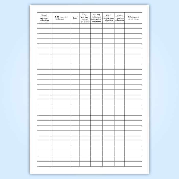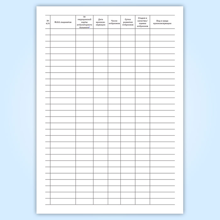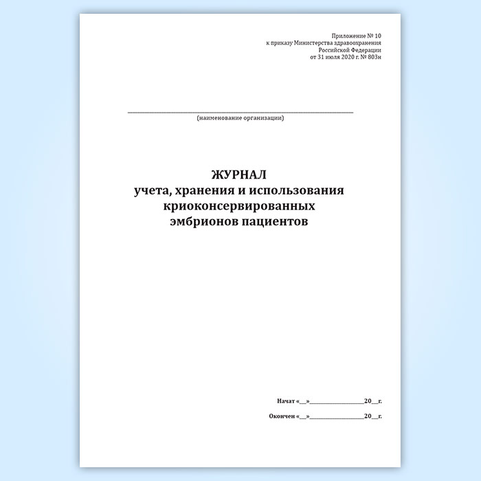 Журнал учета, хранения и использования криоконсервированных эмбрионов пациентов в Чите купить