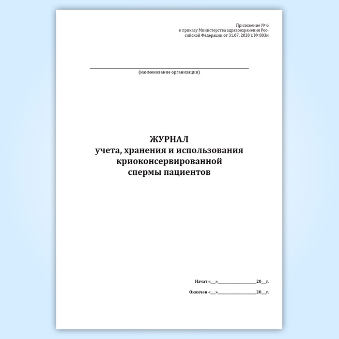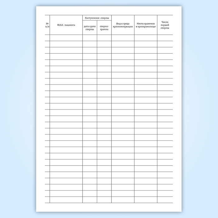 Журнал учета, хранения и использования криоконсервированной спермы пациентов в Чите купить