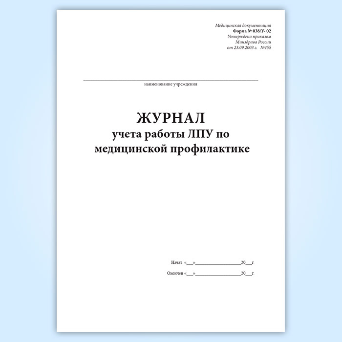 Журнал учета работы ЛПУ по медицинской профилактике (форма 038у-02) в Чите купить