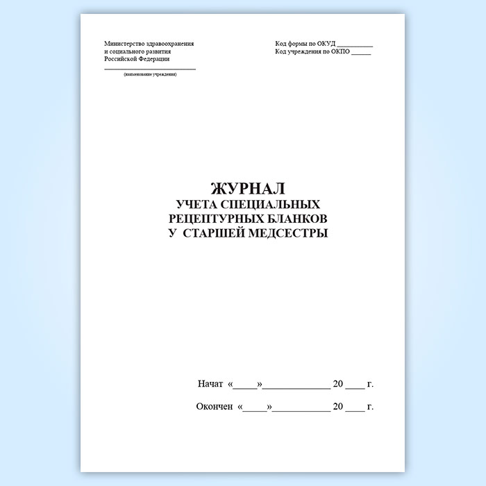 Журнал учета специальных рецептурных бланков у старшей медсестры в Чите купить