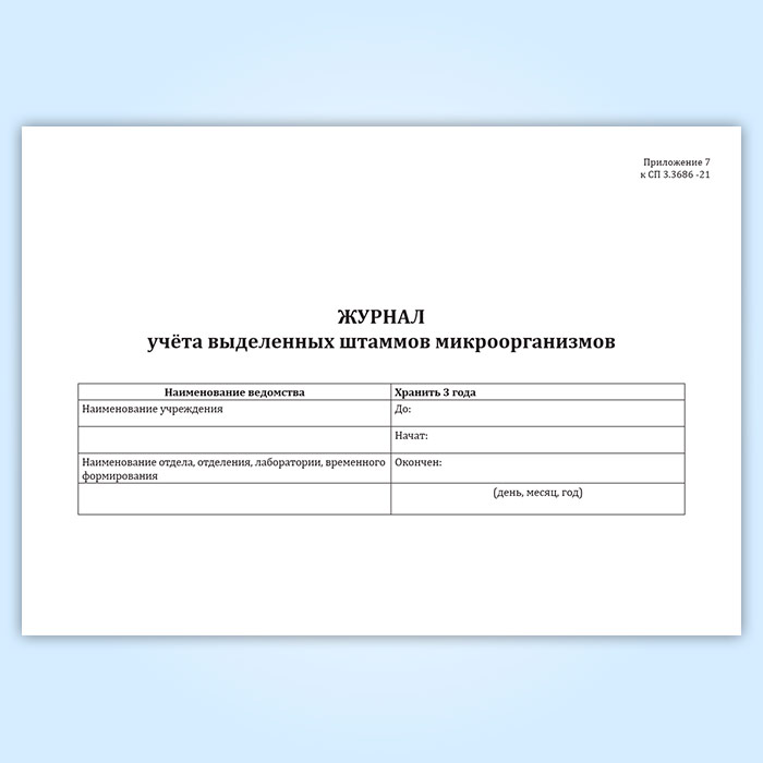Журнал учета выделенных штаммов микроорганизмов (СанПиН 3.3686-21) в Чите купить