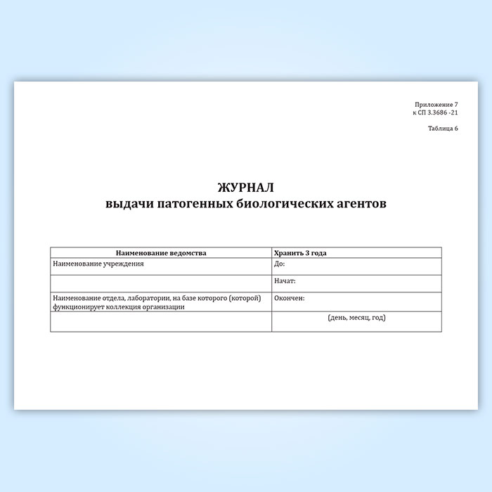 Журнал выдачи патогенных биологических агентов (СанПиН 3.3686-21) в Чите купить