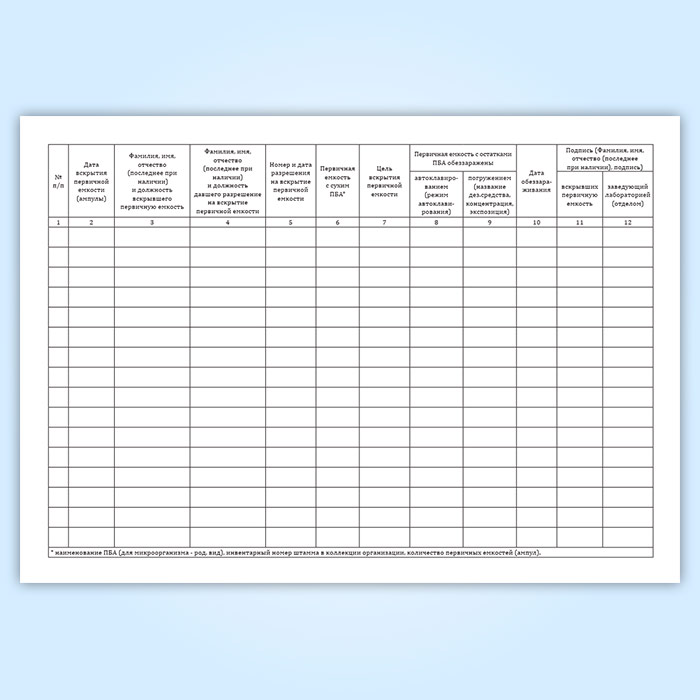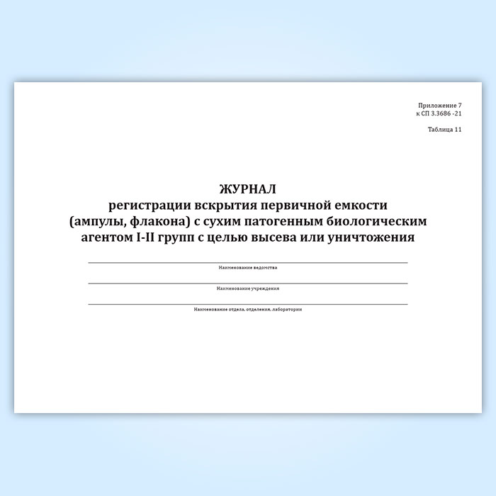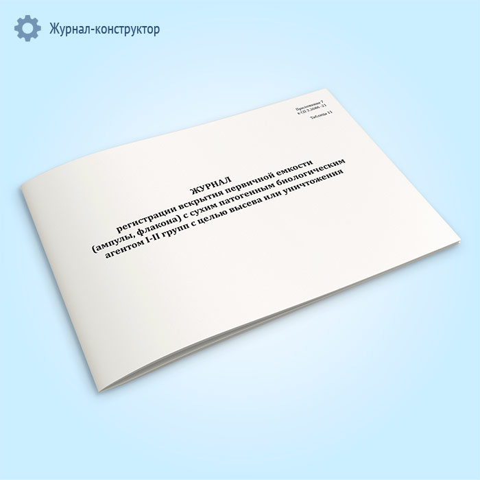 Журнал регистрации вскрытия первичной емкости (ампулы, флакона) с сухим патогенным биологическим агентов I-II групп с целью высева или уничтожения в Чите купить