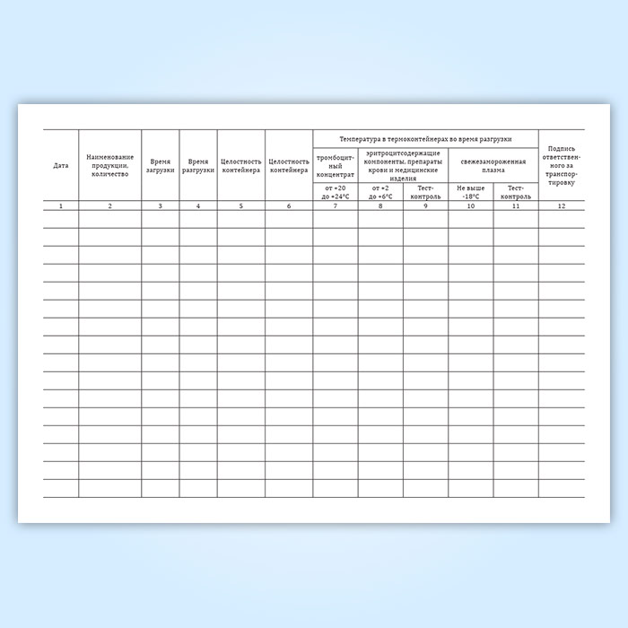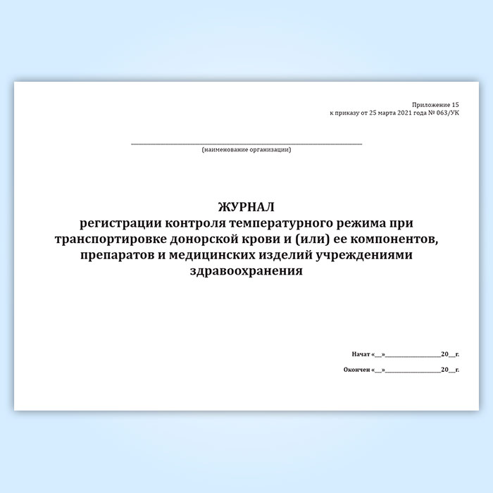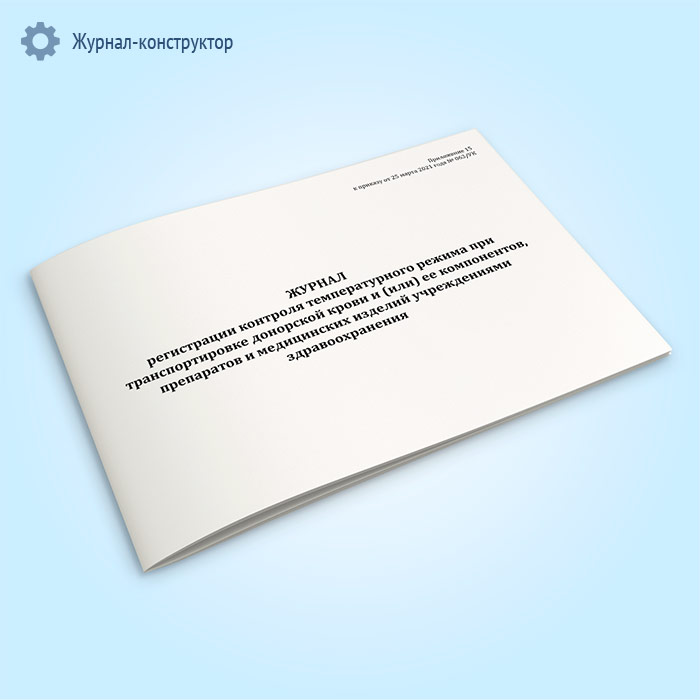 Журнал регистрации контроля температурного режима при транспортировке донорской крови и (или) ее компонентов, препаратов и медицинских изделий учреждениями здравоохранения в Чите купить