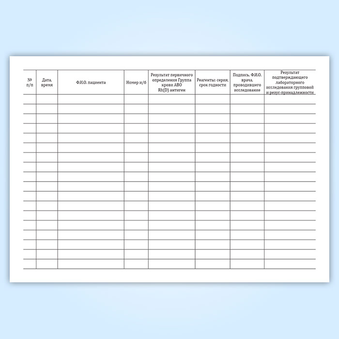 Журнал регистрации первичного определения группы крови в Чите купить