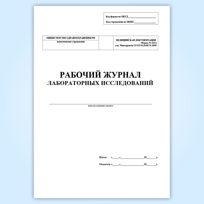 Рабочий журнал лабораторных исследований (форма 251/у) в Чите купить