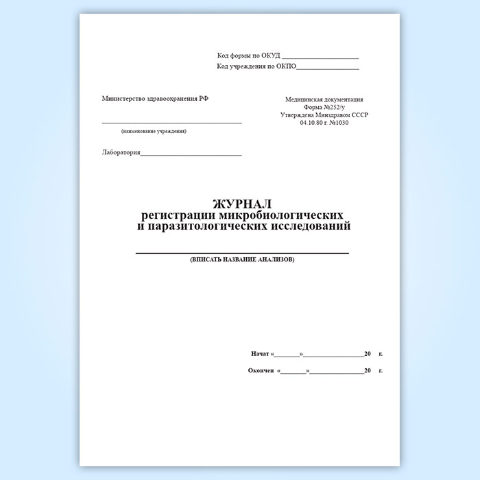 Журнал регистрации микробиологических и паразитологических исследований (форма 252/у) в Чите купить