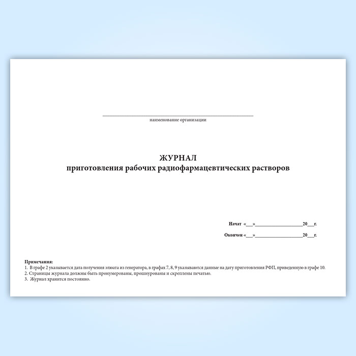 Журнал приготовления рабочих радиофармацевтических растворов в Чите купить