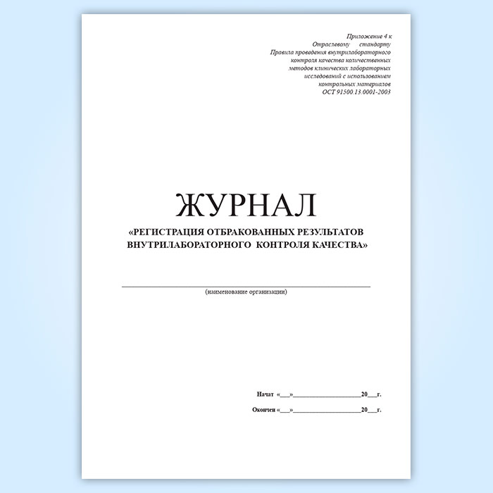 Журнал регистрации отбракованных результатов внутрилабораторного контроля качества в Чите купить