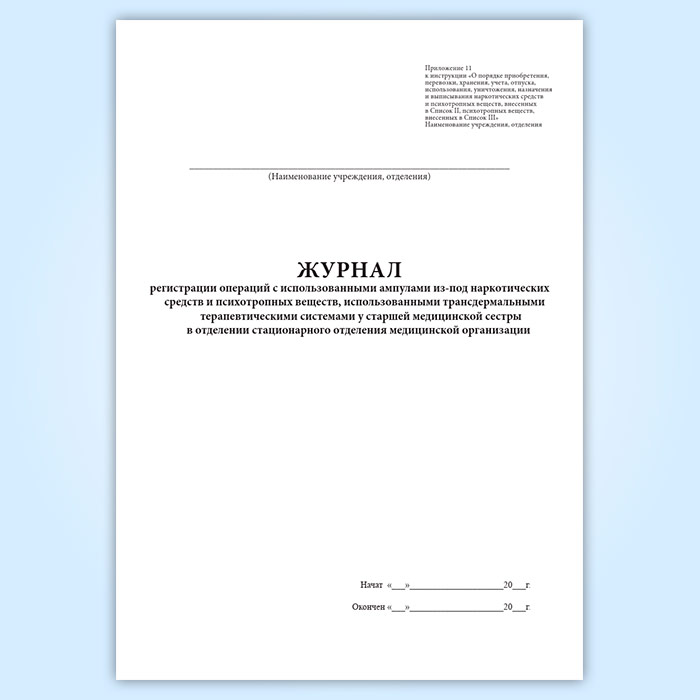 Журнал регистрации операций с использованными ампулами из-под наркотических средств и психотропных веществ, использованными трансдермальными терапевтическими системами у старшей медицинской сестры в отделении стационарного отделения медицинской организации в Чите купить