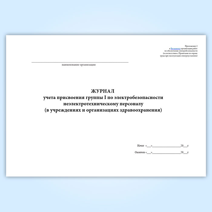 Журнал учета присвоения группы 1 по электробезопасности неэлектротехническому персоналу (в учреждениях и организациях здравоохранения) в Чите купить