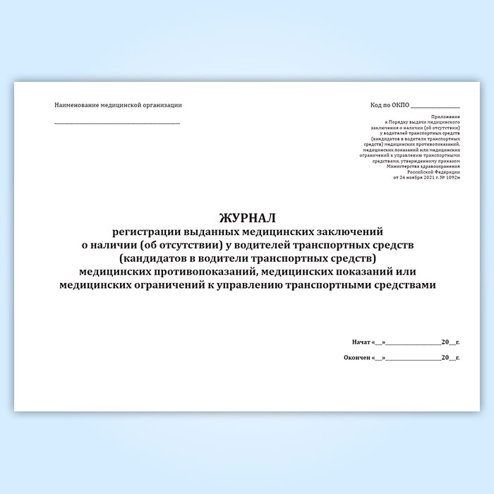 Журнал регистрации выданных медицинских заключений о наличии (об отсутствии) у водителей транспортных средств (кандидатов в водители транспортных средств) медицинских противопоказаний, медицинских показаний или медицинских ограничений к управлению транспортными средствами в Чите купить