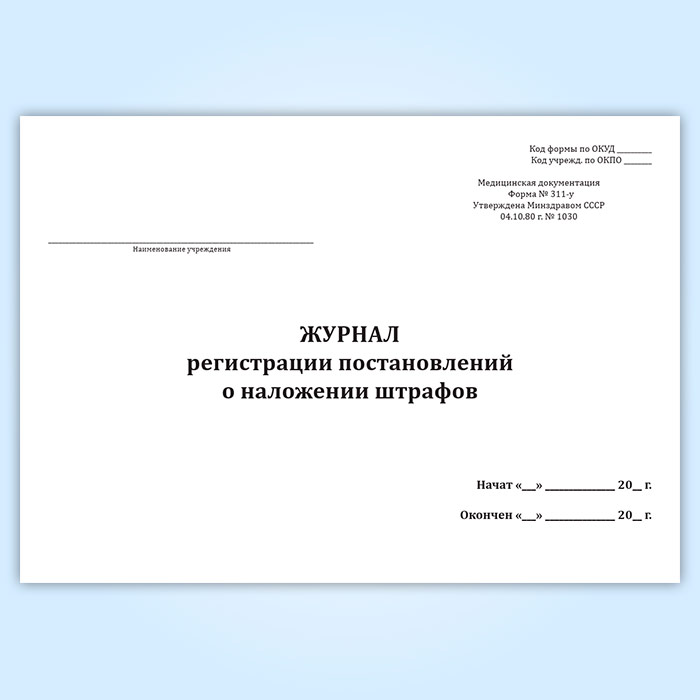 Журнал регистрации постановлений о наложении штрафов (форма 311-у) в Чите купить