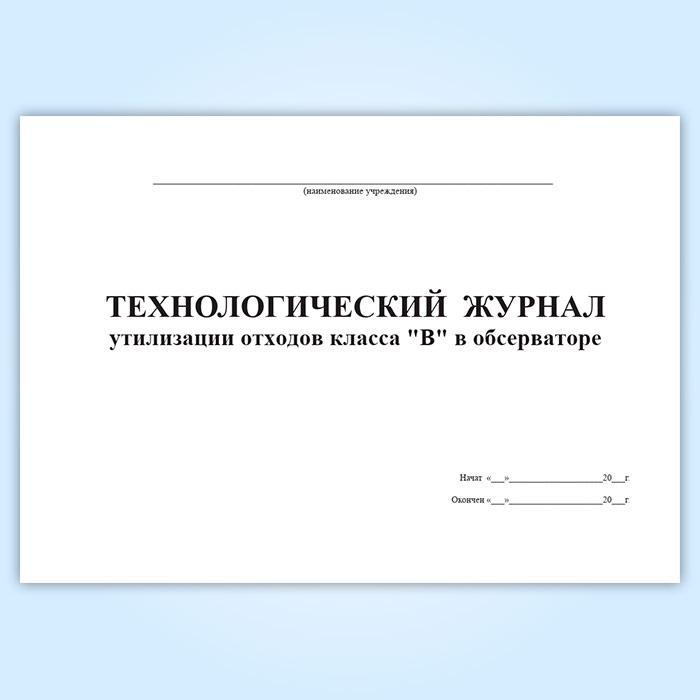 Технологический журнал утилизации отходов класса «В» в обсерваторе в Чите купить