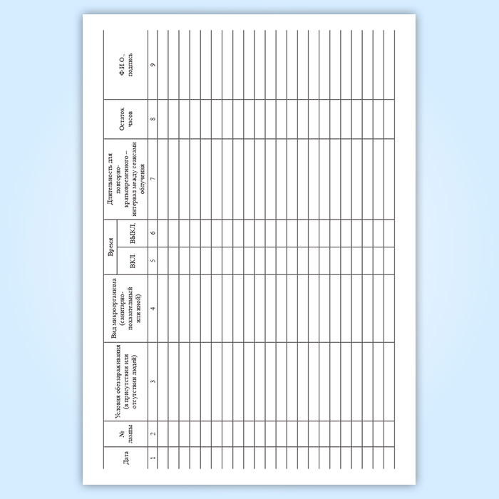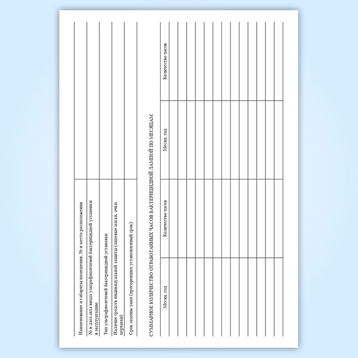 Журнал регистрации и контроля работы бактерицидной установки в Чите купить