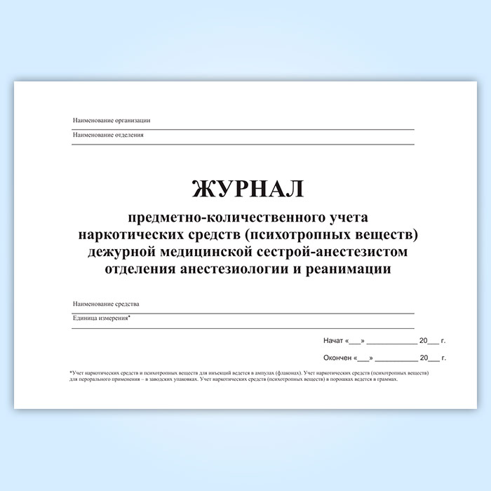 Журнал предметно-количественного учета наркотических средств (психотропных веществ) дежурной медицинской сестрой-анастезистом отделения анастезиологии и реанимации в Чите купить