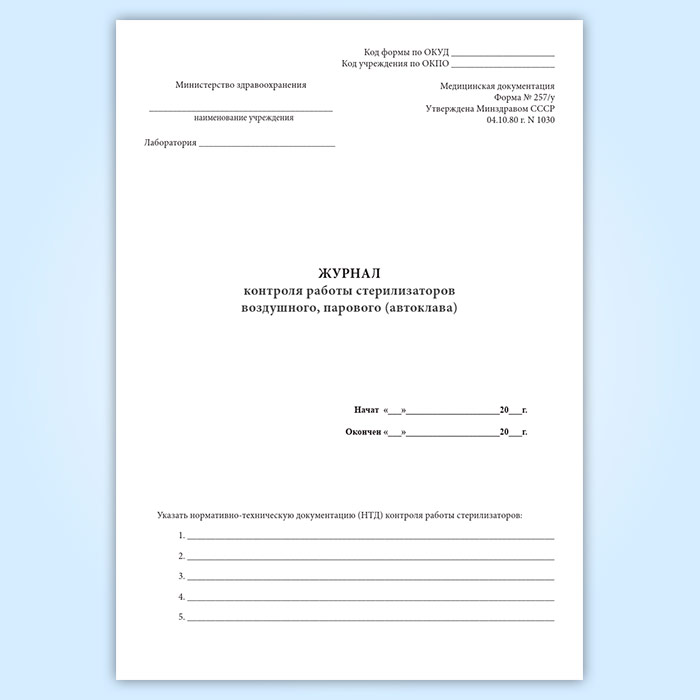 Журнал контроля работы стерилизаторов воздушного, парового (автоклава) (форма 257/у) в Чите купить