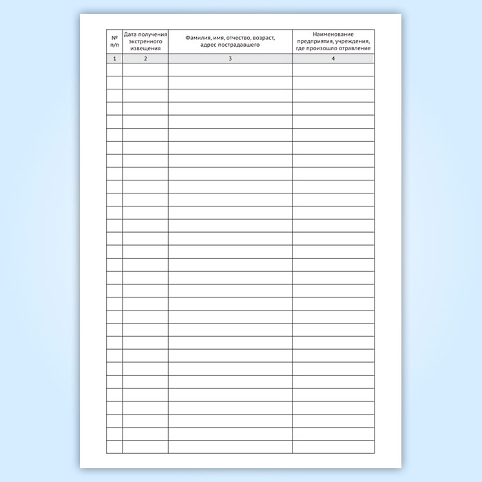 Журнал регистрации экстренных извещений о пищевых и профессиональных отравлениях (форма № 361/у) в Чите купить