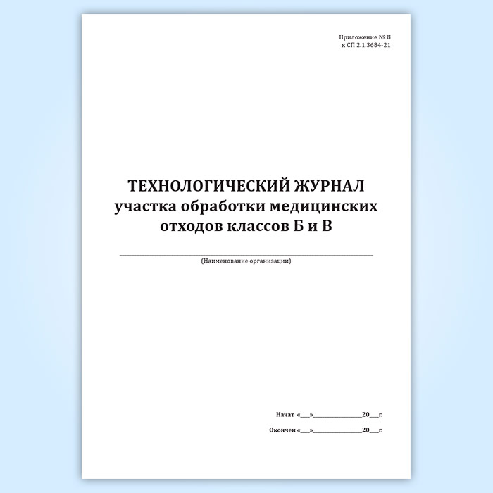 Технологический журнал участка обработки медицинских отходов классов Б и В в Чите купить