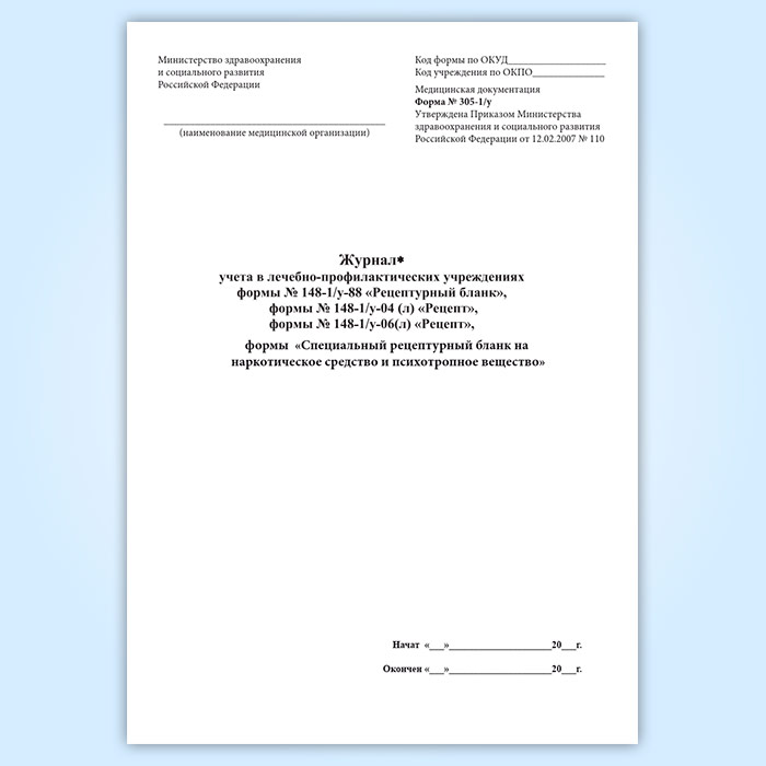 Журнал учета в лечебно-профилактических учреждениях формы 148-1/у-88 «Рецептурный бланк», 148-1/у-04(л) «Рецепт», 148-1/у-06(л) «Рецепт», формы «Специальный рецептурный бланк на наркотическое средство и психотропное вещество форма» в Чите купить