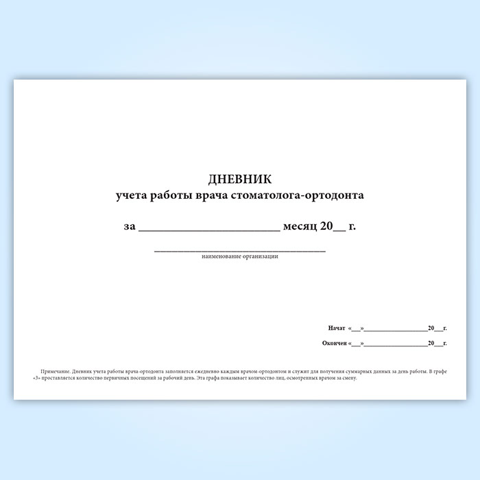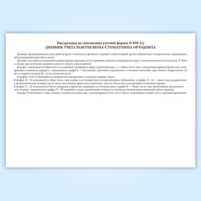 Дневник учета работы врача стоматолога-ортодонта (форма 039-3у) в Чите купить