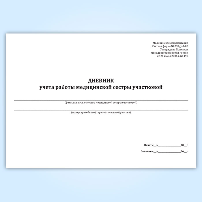 Дневник учета работы медицинской сестры участковой (форма 039/у-1-06) в Чите купить