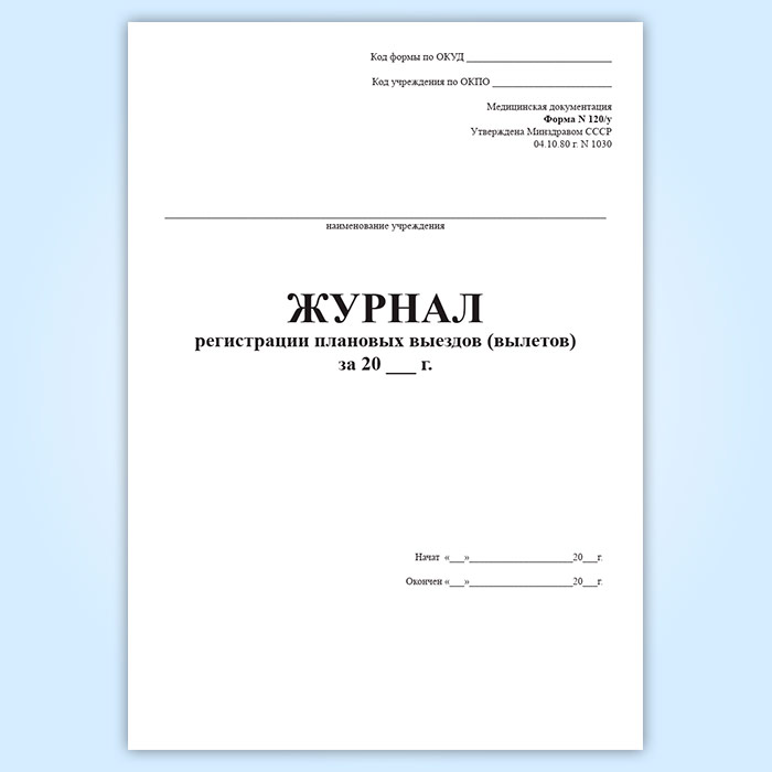 Журнал регистрации плановых выездов (вылетов) (форма 120/у) в Чите купить