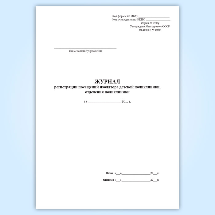 Журнал регистрации посещений изолятора детской поликлиники, отделения поликлиники (форма 059/У) в Чите купить