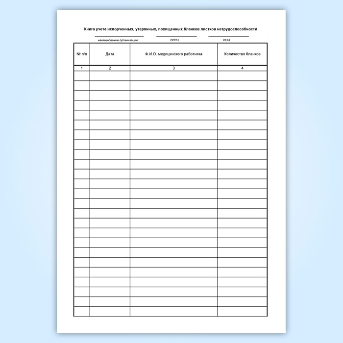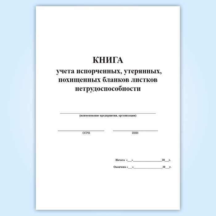 Книга учета испорченных, утерянных, похищенных бланков листков нетрудоспособности в Чите купить