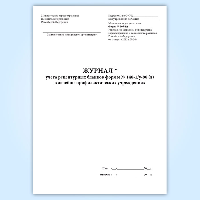 Журнал учета рецептурных бланков формы № 148-1/у-88 (л) в лечебно-профилактических учреждениях форма 305/у-1 в Чите купить