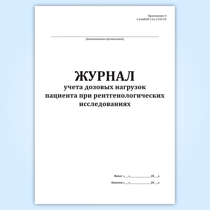 Журнал учета дозовых нагрузок пациента при рентгенологических исследованиях в Чите купить