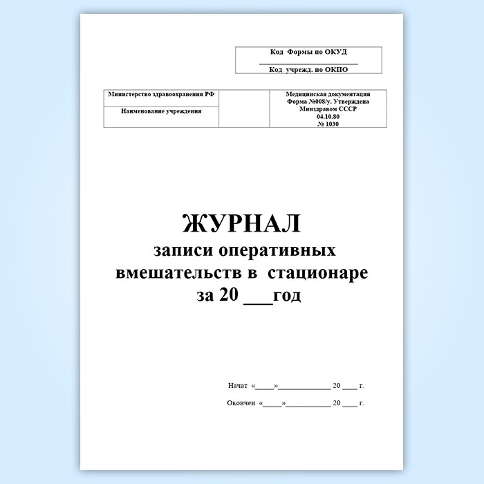 Журнал записи оперативных вмешательств в стационаре за год (форма 008/у) в Чите купить