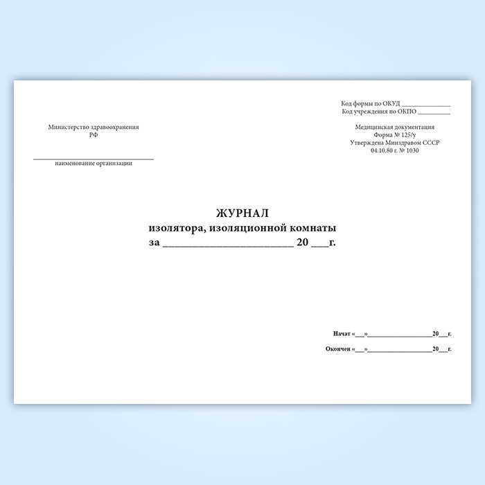 Журнал изолятора, изоляционной комнаты (форма 125/у) в Чите купить