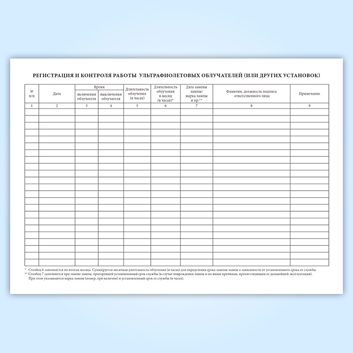 Журнал учета работы ультрафиолетовых облучателей (или других установок) (обсерватор) в Чите купить