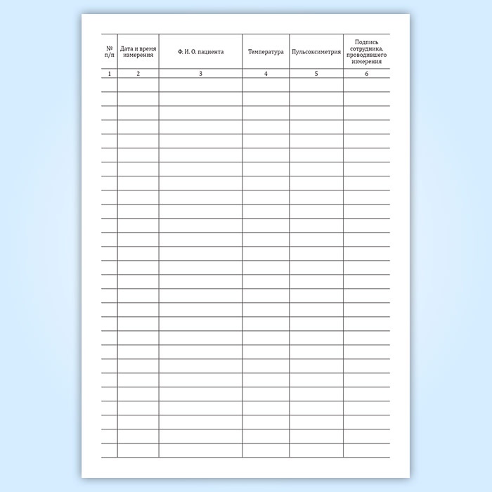 Журнал регистрации показаний пульсоксиметра и температуры тела пациентов в Чите купить