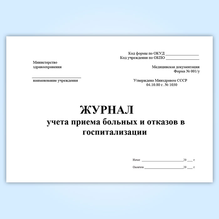 Журнал учета приема больных и отказов в госпитализации (форма 001/у) в Чите купить